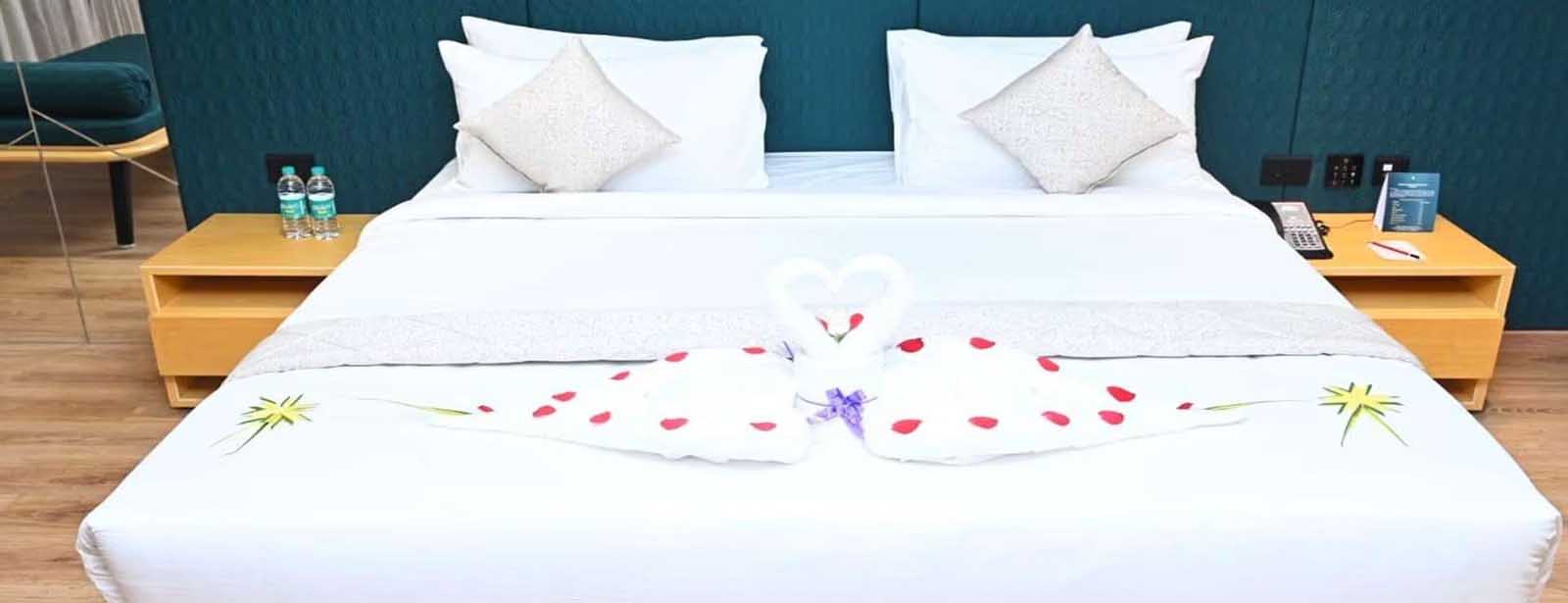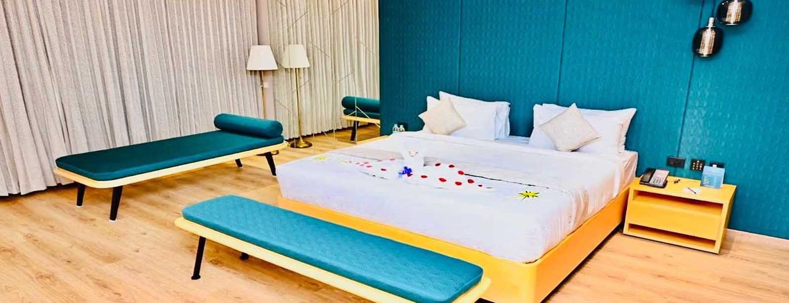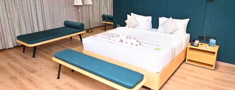 The pinnacle of elegance, our Presidential Suite is designed for those who seek the best. Spanning 812 sq. ft., this expansive suite accommodates up to five guests, featuring a separate living area, an elegant dining space, and a walk-in wardrobe for an unmatched experience. With only two exclusive suites, it offers a sofa-cum-bed for added comfort and flexibility. Guests can enjoy a 50-inch television, minibar, and a well-appointed workspace, ensuring both luxury and functionality. Whether for business executives or families, these suites in Perambalur redefine indulgence.